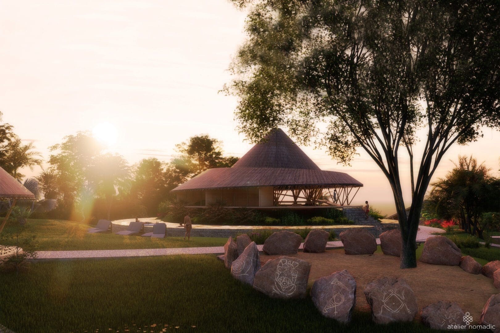 The design team drew inspiration from sacred geometry and symbology of the Ancient Natives of the area, transmitted by remaining members of the local community to ensure that the design honors the local heritage. The use of local, sustainable, and regenerative materials such as bamboo, clay, limestone, coconut husk and hemp offer local artisans and farmers the chance to participate in the project.