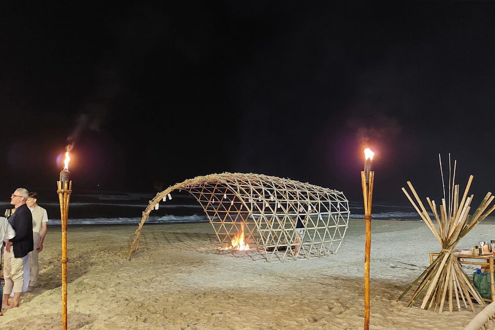For the 2023 Session in Danang, our CEO Louis Thompson was invited as keynote speaker and to organize a hands-on bamboo workshop of building a pavilion on the beach: The Dream Basket.