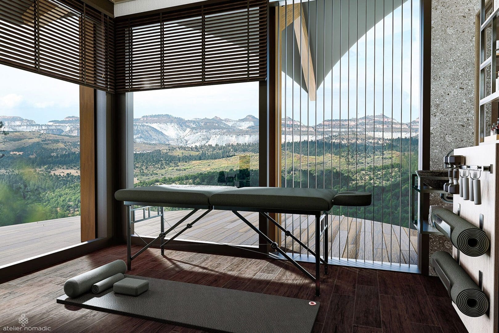 Inside the Leaf Suites provide separate living and sleeping areas, including a “wellness studio” that can be used for exercise, meditation, or in-room spa treatments.