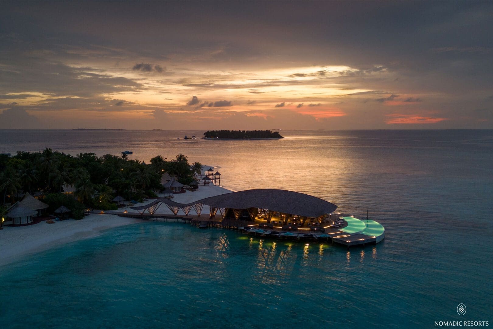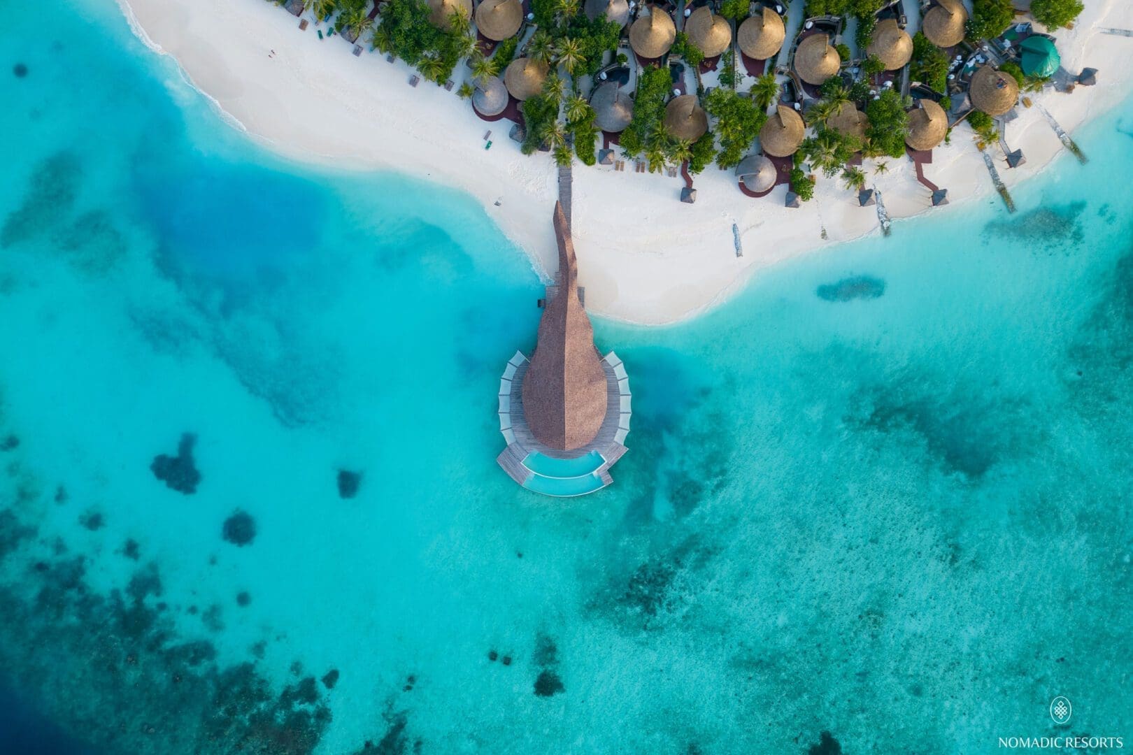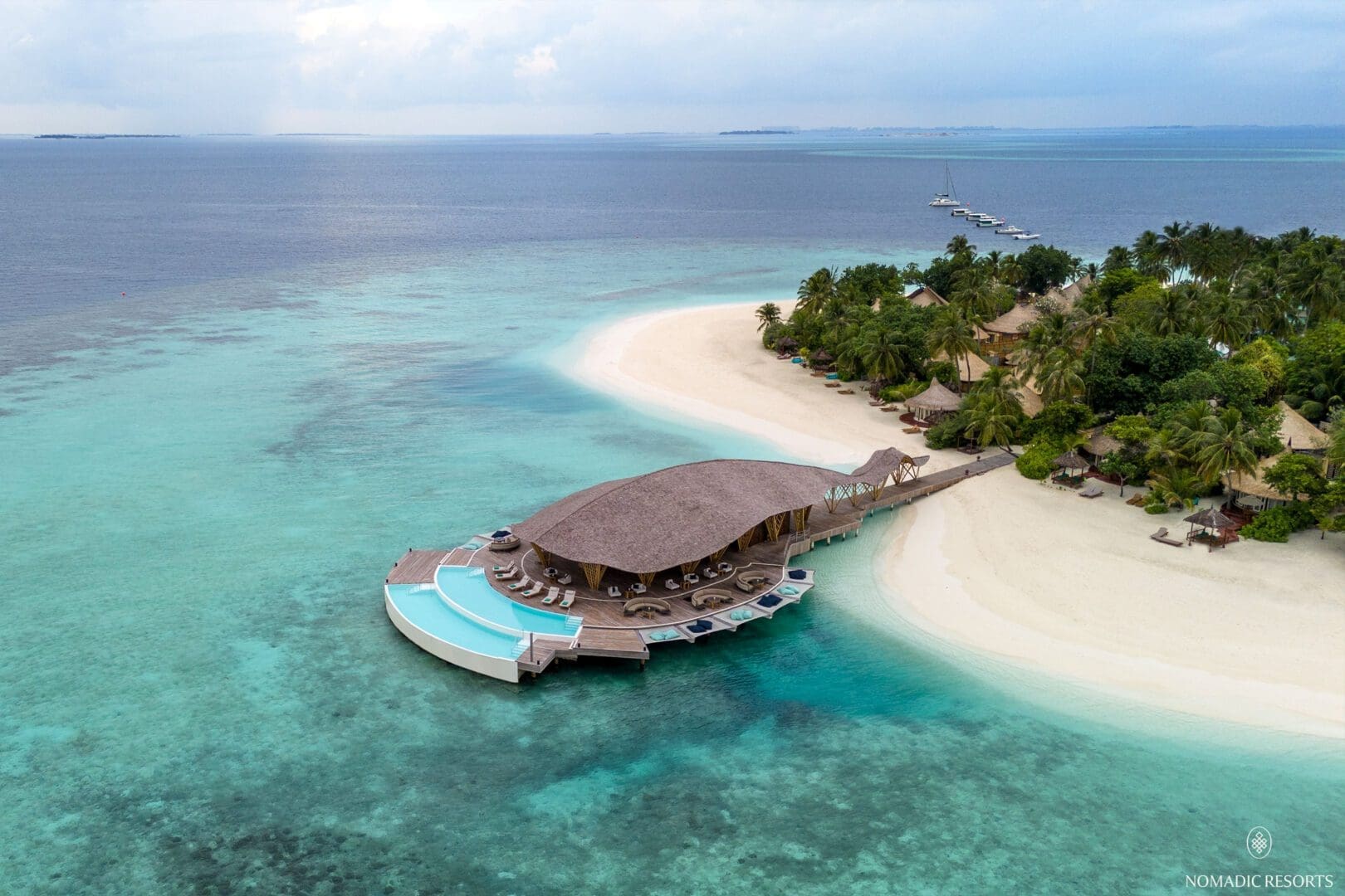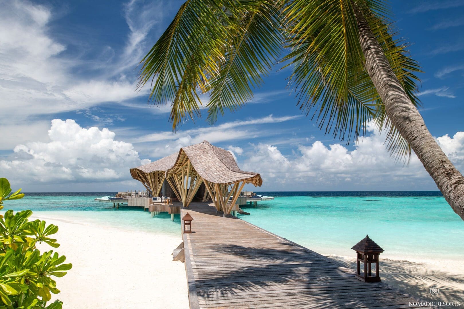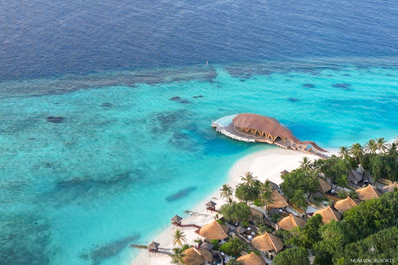 Crafted meticulously with bamboo by Asali Bali, this architectural wonder is amplified by the dramatic Maldivian landscape and reflected in the mirror like lagoon. The dramatic shingled, tail winds back down the jetty and provides a unique arrival experience that links the building and its inhabitants with the mainland.