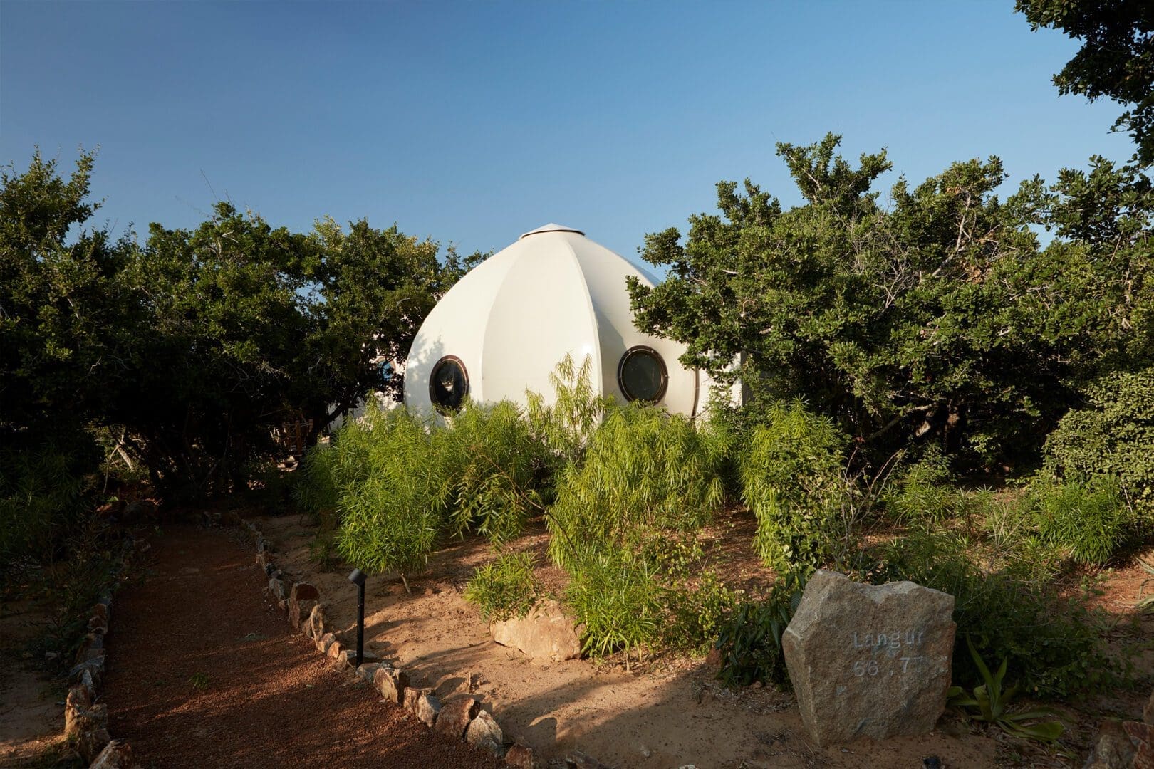 The Urchin Pods function as the children’s bedroom at Wild Coast Tented Lodge in Sri Lanka. The light-weight prefabricated tented pods are customized versions of Nomadic Resorts Urchin model.